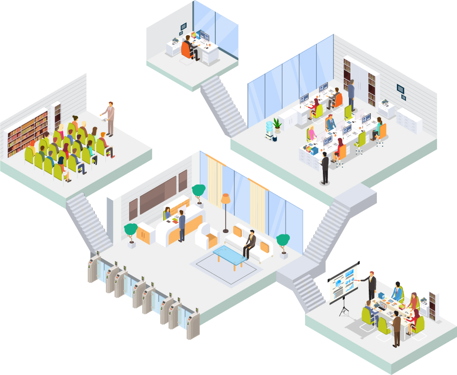 人用・車両用ゲートと多彩な認証機器の組み合わせにより、施設ごとに適切な入退場管理を構築できます。